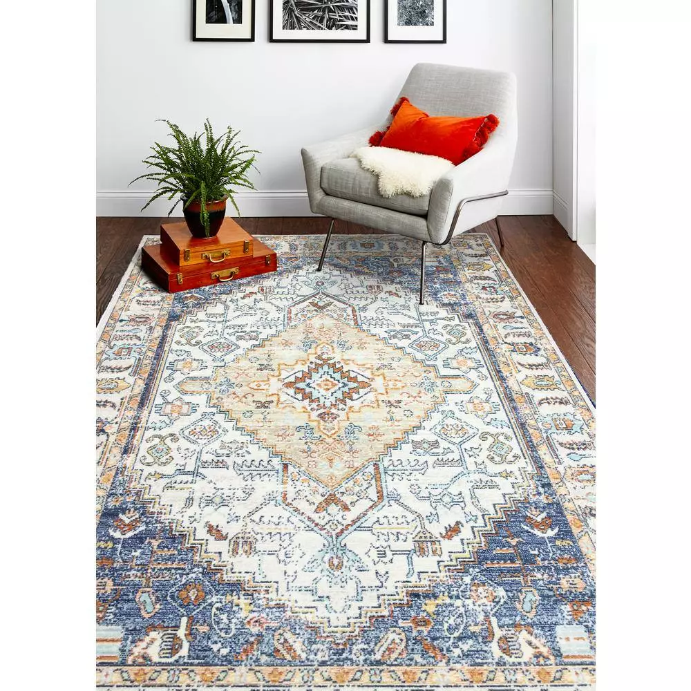 Sorrento Ivory/Navy 9 ft. x 12 ft. (8’6″ x 11’6″) Geometric Transitional Area Rug by BASHIAN